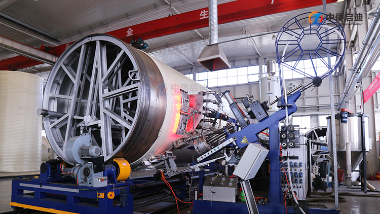 原材料采用高模量聚丙烯做纏繞材料,該材料是當(dāng)前塑料性材料用于地埋排水排污、廢水處理最理想的選擇材料,該材料彈性模量≥1500MPA,HDPE彈性模量?jī)H為800MPA,材料的彈性模量對(duì)所生產(chǎn)的產(chǎn)品的環(huán)剛度起到?jīng)Q定性作用,彈性模量越高,產(chǎn)品環(huán)剛度越高。