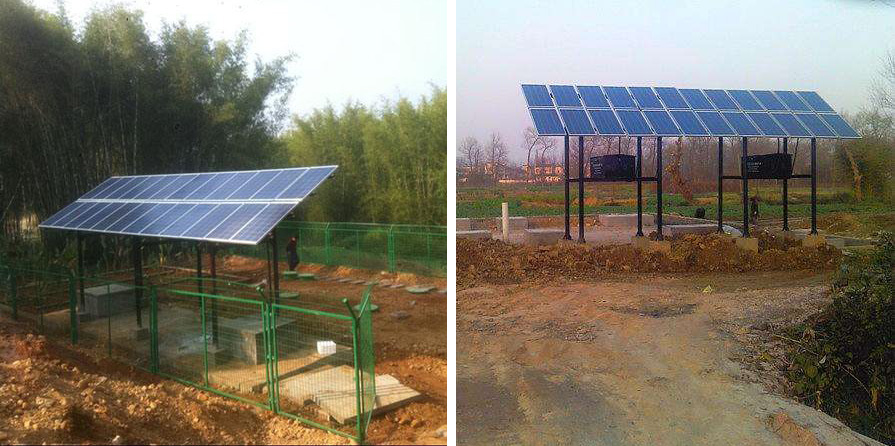 太陽(yáng)能一體化污水處理工藝是濰坊中僑環(huán)境工程有限公司針對(duì)農(nóng)村生活污水特性及建設(shè)、運(yùn)行、管理方面的特點(diǎn),引入太陽(yáng)能為能源,結(jié)合太陽(yáng)能光伏技術(shù),借鑒并改造傳統(tǒng)成熟污水處理工藝,使之適應(yīng)太陽(yáng)能特點(diǎn),強(qiáng)化氮、磷的處理,提高污水處理效率及處理深度,新型的全自動(dòng)的農(nóng)村生活污水處理新技術(shù)。太陽(yáng)能污水處理設(shè)備是由太陽(yáng)能光伏板、蓄電池組、曝氣系統(tǒng)、回流系統(tǒng)、微電腦控制系統(tǒng)和遠(yuǎn)程通訊系統(tǒng)等組成。通過(guò)太陽(yáng)能光伏板將太陽(yáng)能轉(zhuǎn)為電能,作為曝氣設(shè)施、回流設(shè)施的動(dòng)力,多余能量?jī)?chǔ)存于蓄電池中;根據(jù)優(yōu)化調(diào)試后的數(shù)據(jù),通過(guò)微電腦控制系統(tǒng)完成自動(dòng)化控制,自動(dòng)運(yùn)行曝氣設(shè)施、回流設(shè)施及攪拌設(shè)施。工程處理后水質(zhì)達(dá)到中華人民共和國(guó)《污水綜合排放標(biāo)準(zhǔn)》(GB8978—1996) 一級(jí)標(biāo)準(zhǔn)。