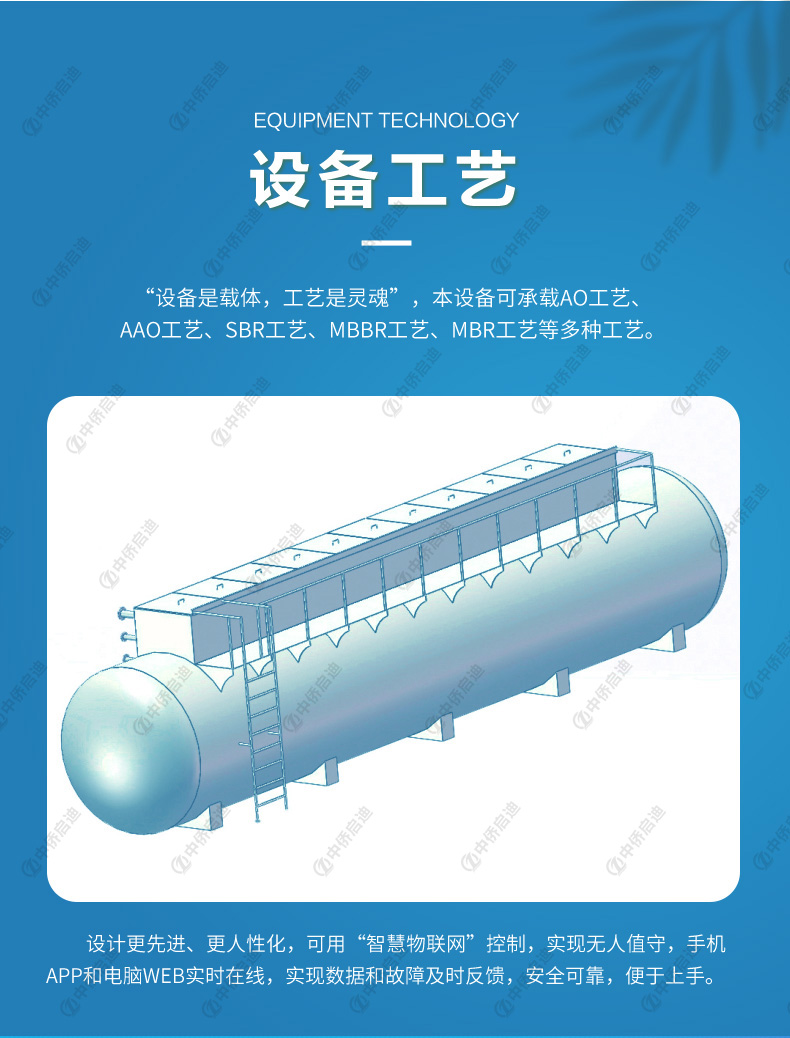 6、圓罐式一體化污水處理設(shè)備配置“智慧物聯(lián)網(wǎng)”控制,可實現(xiàn)無人值守,手機APP和電腦WEB實時在線,實現(xiàn)數(shù)據(jù)和故障及時反饋。