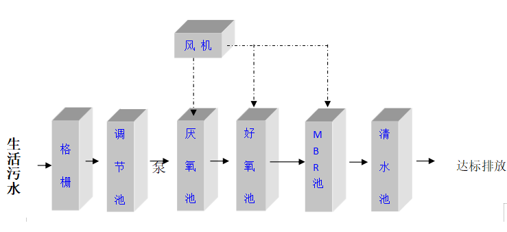 MBR工藝介紹針對(duì)多個(gè)污水處理設(shè)施建設(shè)和運(yùn)營狀況的實(shí)際調(diào)研,并且經(jīng)過污水處理實(shí)驗(yàn)分析,提出了適合于生活污水特點(diǎn)的專業(yè)處理方案,并在裝備中引入了最為先進(jìn)的MBR膜技術(shù),能徹底解決“污水收集難”、“污水管網(wǎng)投資高”、“占地面積大”和“施工周期長”等問題,并且其相較于常規(guī)的城鎮(zhèn)污水處理具有“處理水質(zhì)好”、“占地面積小”、“運(yùn)行成本低”、“投資成本低”、“智能化管理”等特點(diǎn),出水主要指標(biāo)可直接達(dá)到《城鎮(zhèn)污水處理廠排放標(biāo)準(zhǔn)》(GB18918-2002)一級(jí)A標(biāo)準(zhǔn)或者中水回用標(biāo)準(zhǔn)。