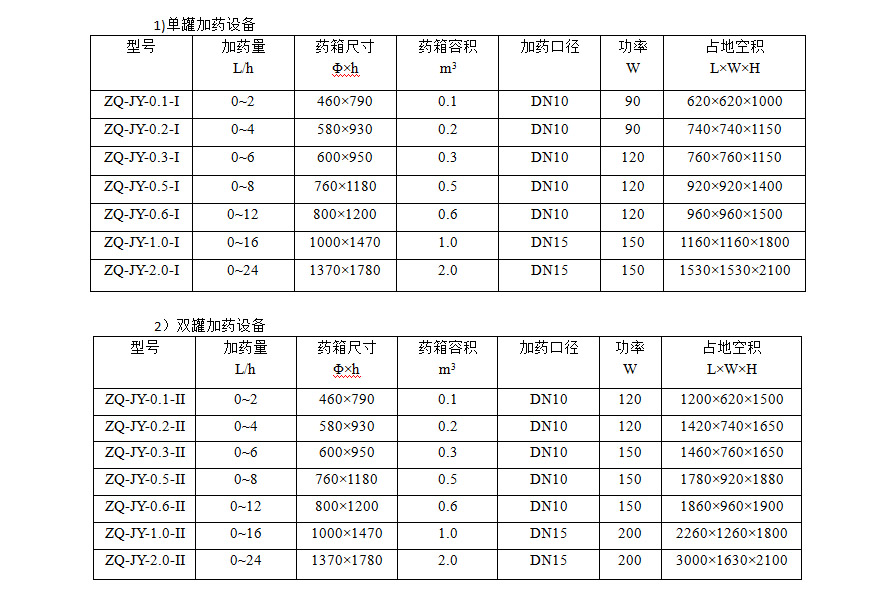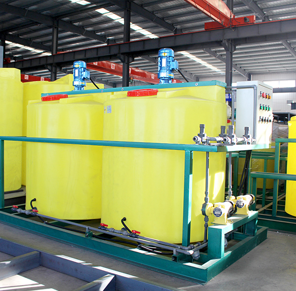 1、攪拌機:由攪槽機和攪拌裝置組成。其作用是使需投加的溶質和水(溶劑)按一定比例配置后,使其充分混合。