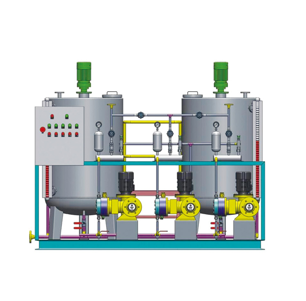 在電力、石油、化工、冶金、環(huán)境工程、水處理、印染等領域中常需要將某種液體連續(xù)自動的注入到另一種液體中成為一種混合液,或者使加入的藥劑與液體中存在的某種組分發(fā)生化學反應,以達到預期的工藝要求。生產過程是連續(xù)的,這種投加工作必須同樣是連續(xù)的,需要一種既能配制溶液,又能定量定時投加藥劑的全自動加藥裝置設備。